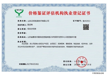 價格鑒證評估機構(gòu)執(zhí)業(yè)登記證書